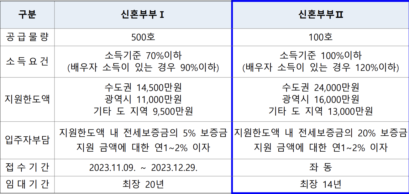 • 금회 모집공고는 신혼부부Ⅱ 공고이며, 신혼부부Ⅰ은 별도 공고 중이니 유의하여 신청하시기 바랍니다.
